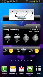* 6 different Widgets + 10 different themes. Widgets include Digital Clock, special effects like rain drops or clouds, and weather forecast.